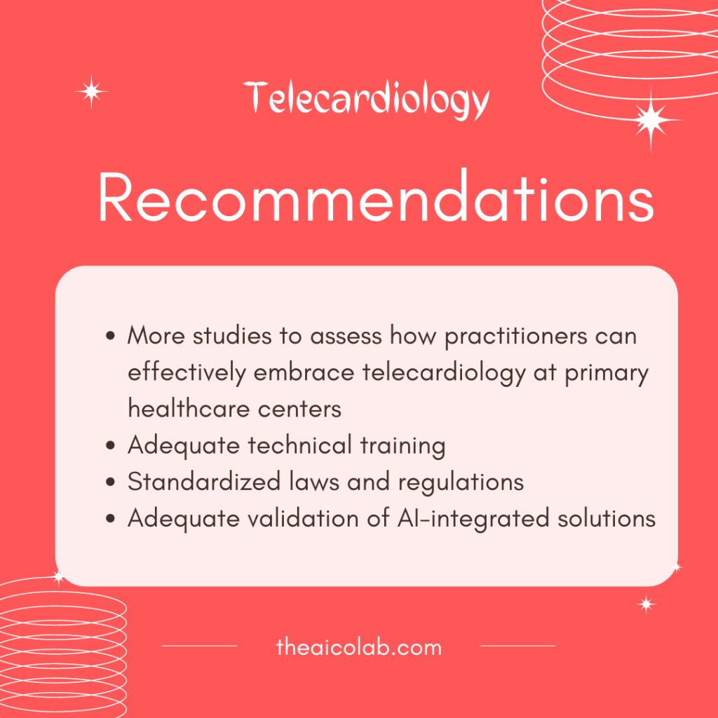 - More studies are needed to assess how practitioners can effectively embrace telecardiology at primary healthcare centers.