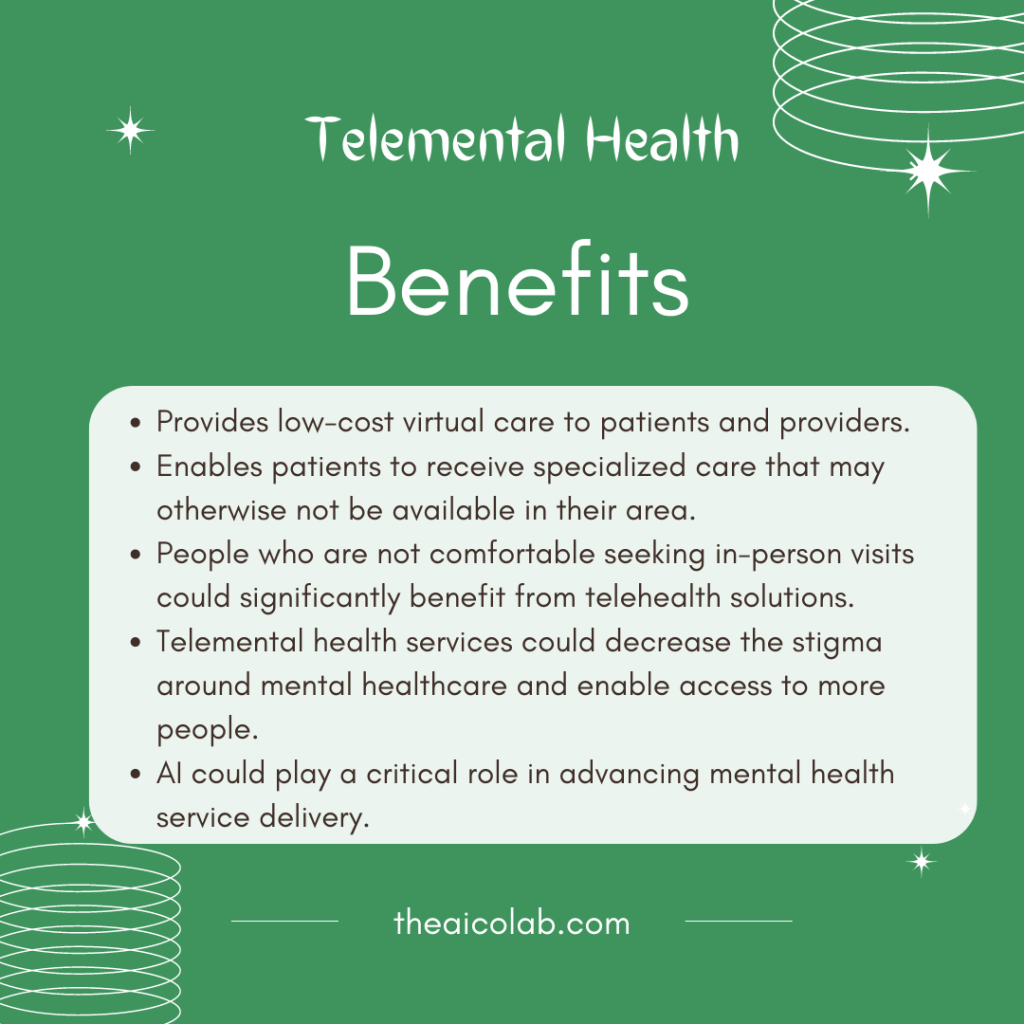 Note: If you are a telehealth provider in the field of mental health, and would like to be featured on this page, please send a brief description of your company to theaicolab@gmail.com.