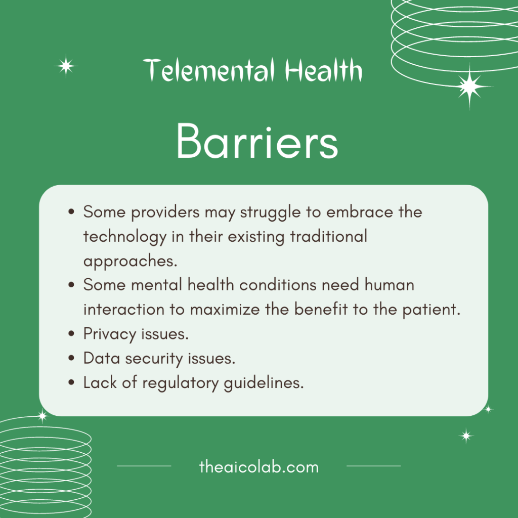 In traditional telemental health services, providers and patients use telephone calls, text messaging, emails, online chat forums, etc., for crisis management and consultation. Guided therapies facilitated by asynchronous telepsychiatry, text messaging, and smartphone apps are popular these days. They significantly reduce the need for human interaction, thus cutting costs, and geospatial and time barriers. Usually, patients with mental health problems are reluctant to have human interaction and are more comfortable interacting with machines. In such cases, Artificial Intelligence (AI) could also play a critical role in advancing mental health service delivery (Journal Article). Many apps use passive data to infer behavior from sensors and activities. For example parameters such as the total number of outgoing calls, location-based absolute distance traveled, voice modulations, speaking rate, and voice quality could all be valuable along with the clinical symptoms to train AI-based predictive models to predict symptoms of mental health issues such as depression and Post Traumatic Stress Disorder (PTSD).