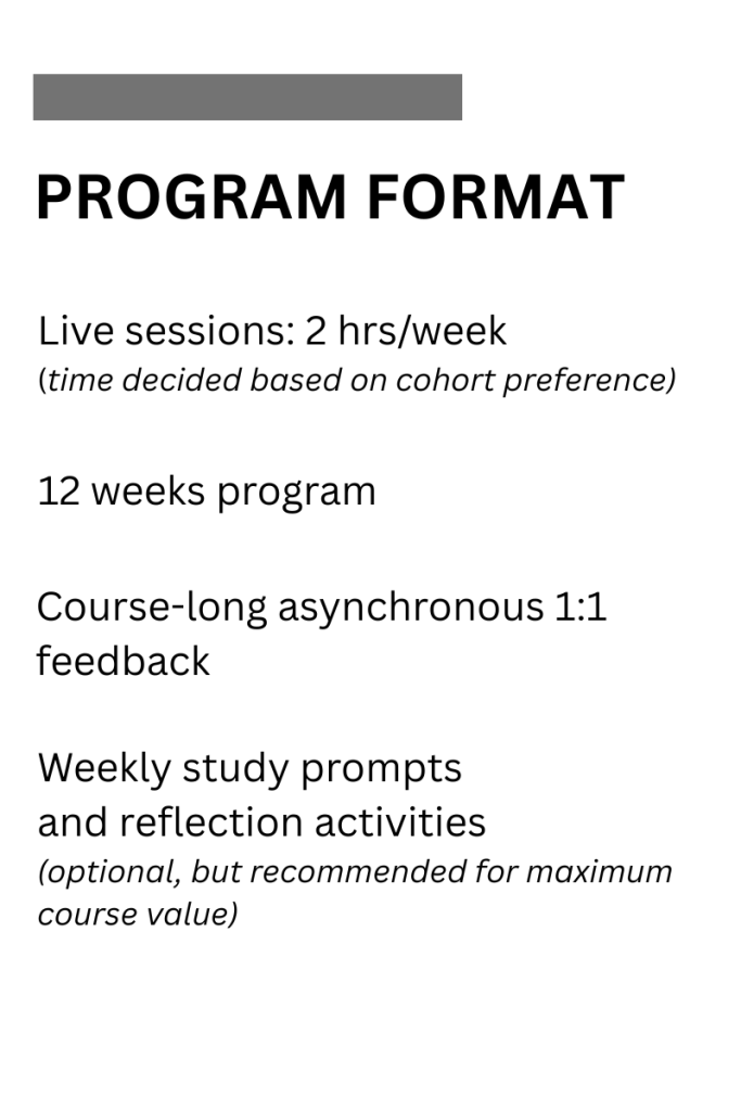 Recordings of all live sessions will be available to students in the course portal for on-demand access until the end of the course duration.