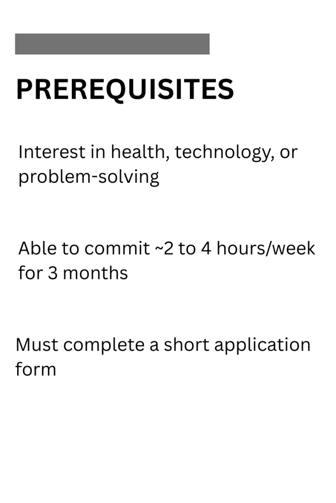 No prior coding experience required, but an interest in life sciences and innovation is a great place to start. If you know coding and want to build a tech product, we can offer the required guidance so you get the maximum value out of the program.